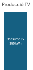 | Potència contractada: 5,75 kW Contracte subm. PVPC: 0,073 €/kWh Consum total: 400 kWh Producció FV: 150 kWh Excedents: 0 kWh |